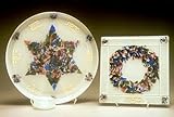 Floral Seder Plate & Matzah Tray By Sara Beames Dimensions: Seder 14 Description: Green, blue, pink and lilac confetti glass create this floral pattern with gold lettering in English & Hebrew. Comes with 6 handcut dishes